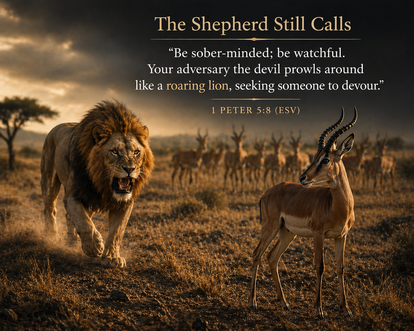 Scripture gives us a clear and sobering image: “Your adversary the devil prowls around like a roaring lion, seeking someone to devour” (1 Peter 5:8).